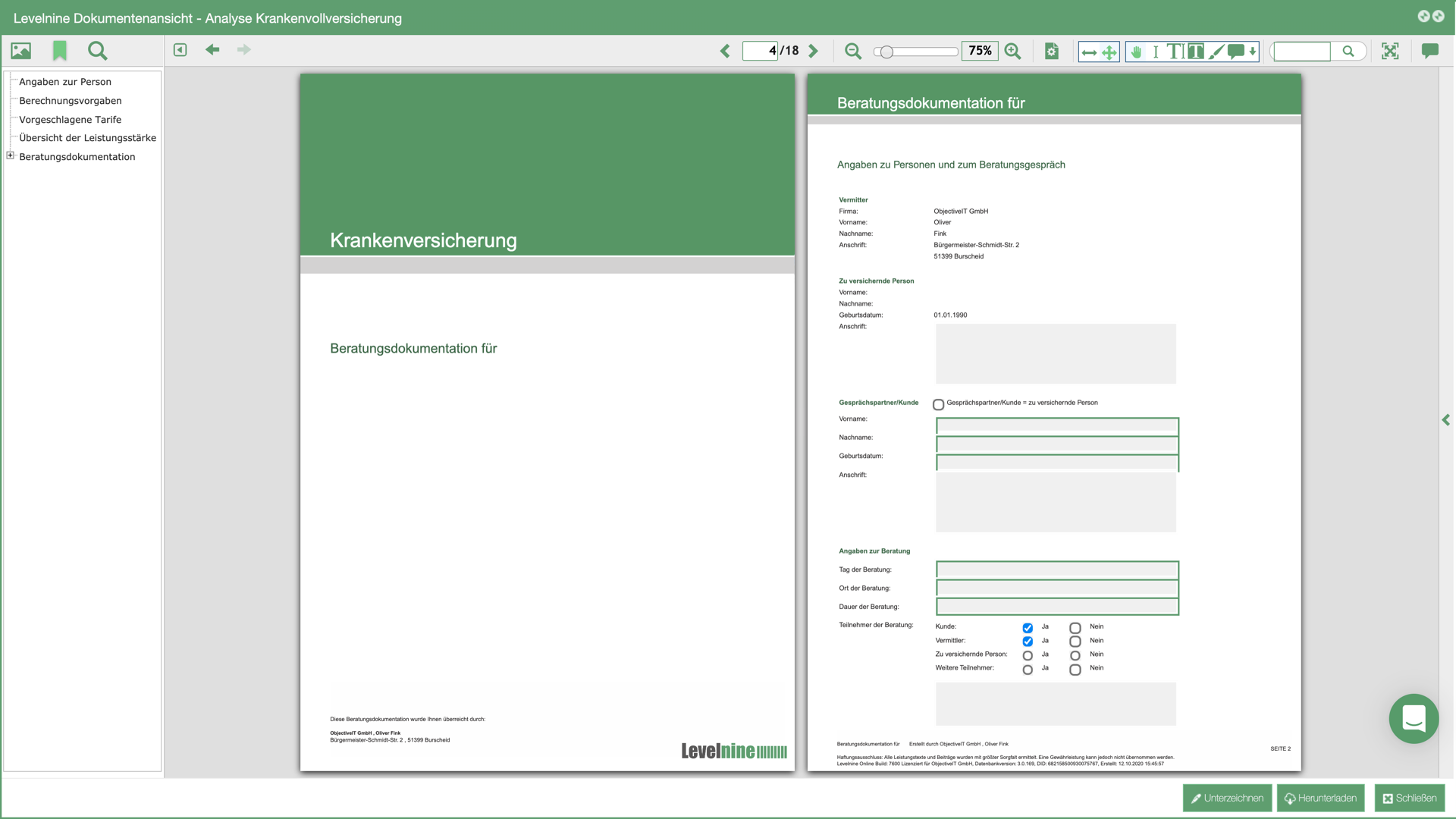• zertifizierte Beratungsdokumentation
